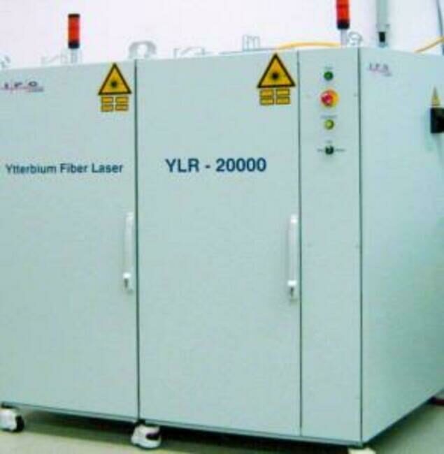 Na obr. 3 je příklad výkonového laseru pro svařování s výkonem 20 kW, typ YLR 20000 od firmy IPG Photonics, kterou v ČR zastupuje firma LAO průmyslové systémy, s. r. o. Základní parametry toho laseru jsou: výstupní výkon 20 kW, průměr vlákna 200 µm, půdorys 1 480 x 806 mm, příkon 70 kW, účinnost 30 % a hmotnost 1 200 kg. Jak je z fotografie zřejmé, je výstupní paprsek přiveden do optického vlákna, přičemž lze použít „rozbočovacích" jednotek, a pak lze použít více vláken vedených na různá pracoviště a výkon laseru přepínat nebo rozdělovat mezi nimi.