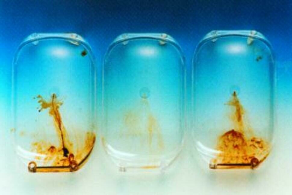 Na problematiku studených spojů navazuje další vada výstřiků s všeobecně užívaným názvem dieselefekt (obr. 11). Tato vada vzniká při nedostatečném odvzdušnění a vyšší vstřikovací rychlosti. Vzduch, který se nepodařilo při plnění formy odstranit, se komprimuje, čímž nastává ohřev způsobující lokální degradaci materiálu; v krajním případě dochází i k jeho spálení. Na výstřiku v místě lokální komprese vzduchu vznikají nedoplněná místa a tmavé až černé stopy po spáleném materiálu. U tlustostěnných výstřiků může docházet k rozptýlení vzduchu v tavenině a tvorbě drobných bublin. Tato vada se někdy nesprávně zaměňuje s tvorbou vakuol, které vznikají též v oblasti velké tloušťky stěny, avšak v důsledku objemového smrštění (vakuoly jsou obvykle větší). V místě uzavírání vzduchu je nutno realizovat odvzdušňovací kanály, jejichž tloušťka závisí na typu zpracovávaného polymeru a technologických podmínkách vstřikování (tlaky, rychlosti, teploty). Hloubka plochých odvzdušňovacích kanálů by neměla být větší než 0,02 mm (délka min. 20 mm). U větší hloubky je nebezpečí vzniku nežádoucích otřepů či přetoků na výstřiku.