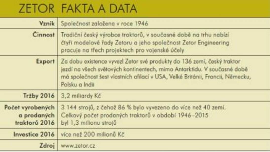 V minulém roce oslavil tradiční výrobce traktorů Zetor 70. výročí svého vzniku. Tento světoznámý český produkt prošel za dobu své existence několika vývojovými etapami. Od prvního Zetoru konstruktéra Františka Musila přes unifikované koncepce a inovace až po dokonalý design z dílny italské firmy Pininfarina.