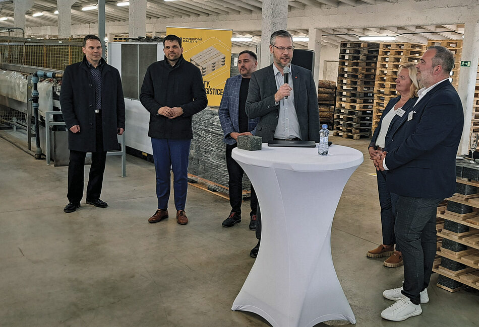 Slavnostní otevření linky na tvorbu komponentů pro hybridní palety ve Stanovištích. (Zdroj: archiv Flexipal)