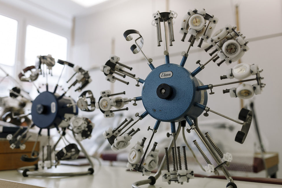 Elton hodinářská je manufaktura a manuální práce je zde zastoupena ve všech částech výroby. Nenajdete tu žádnou pásovou výrobu, každé hodinky jsou originál. Okamžitě jsme zjistili, že nás zde zajímá naprosto všechno. Zajistit přesný chod hodinek vyžaduje zabezpečit také produkci dílů s absolutní přesností. K tomuto účelu je pro frézovací operace dílna vybavena třemi obráběcími centry Picomax od firmy Fehlmann s řídicími systémy Heidenhain TNC 640 a iTNC 530. Tyto stroje frézují pouzdra, základny, můstky do strojku, vložky, korunky a další součástky s maximální přesností. Převedeno do čísel, na každý z více než 100 různých otvorů v základně je tolerance standardně 5 µm. Některé otvory dokonce vyžadují pozici středu v přesnosti pouhých 2 µm. K udržení takových hodnot je třeba vysokých požadavků na velmi kvalitní nástroje, speciální kleštiny, přípravky a v neposlední řadě na udržení konstantní teploty. Klimatizace je v dílně nastavena na 24 stupňů. Vychýlení teploty, byť jen o dva stupně, by mohlo mít vliv na přesnost obráběných dílů.
