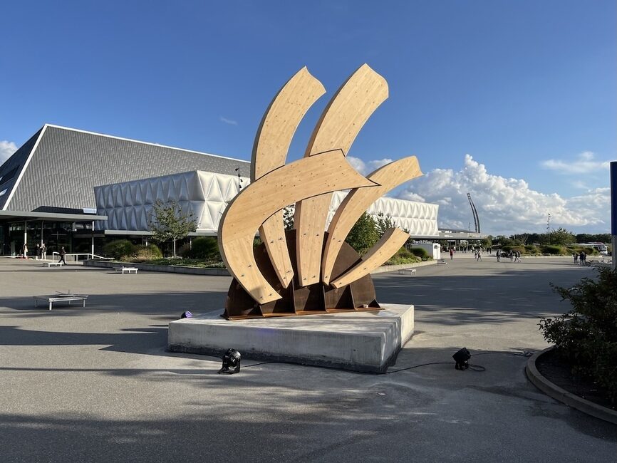 Symbol hnutí WorldSkills před Jyske Bank BOXEN v Herningu, jehož tvar připomíná ruku, která má symbolizovat globální propojení lidí prostřednictvím dovedností. Zde proběhlo slavnostní zahájení i ukončení šampionátu. (Zdroj: Skills Czech Republic)
