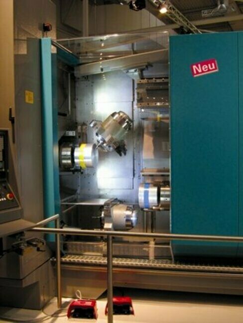 Velkou expozici v této kategorii strojů měla firma Emag. Ta prezentovala především aplikační možnosti svých strojů na různých typech ukázkových obrobků. Za zmínku stojí stroj VLC 250 v provedení P, určený pro výrobu přírubových součástí. Stroj je vybaven dvěma vřeteny, která se střídají v práci nad jednou revolverovou hlavou. Překrytí času manipulace (v rámci něhož může být provedena i postprocesní kontrola obrobku) a času obrábění tak umožňuje výrazně zkrátit cyklový čas.