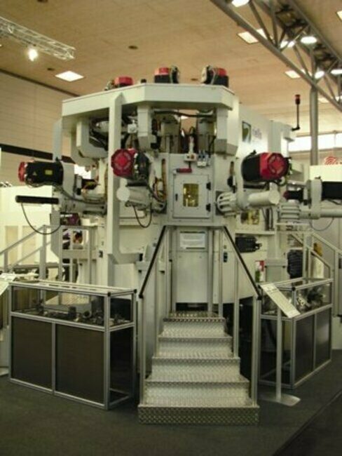 Tento stroj je konstruktéry firmy Grob zkonstruován i ve dvouvřetenovém provedení. Kolíbka, na které je umístěn obrobek, je patřičně delší a zásobníky nástrojů jsou umístěny z důvodu malého zástavbového prostoru nad vřeteníkem. Celý stroj je uložen na samonosném rámu, na kterém jsou umístěny všechny agregáty. Tento stroj díky své koncepci dovoluje obrábět plochy (otvory), které jsou umístěny na delších stranách bloku. Výrobní operace na těchto plochách evidentně trvají nejdéle, proto jinak liniové uspořádání toku obrobků je u těchto strojů paralelizováno.