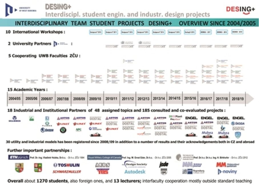 V projektu DESING+ (Designing and Engineering) studenti spolupracují v oblastech konstrukce, průmyslového designu, elektrotechniky, zdravotnictví a marketingu při řešení projektů zadávaných a konzultovaných českými i zahraničními průmyslovými partnery. Od roku 2004 se projektu zúčastnilo již téměř 1 300 studentů z pěti fakult Západočeské univerzity. Do projektu již bylo, příp. stále je, zapojeno 16 českých a německých průmyslových a institucionálních partnerů. Významným výsledkem projektu jsou i desítky udělených užitných a průmyslových vzorů na originální části navržených řešení.