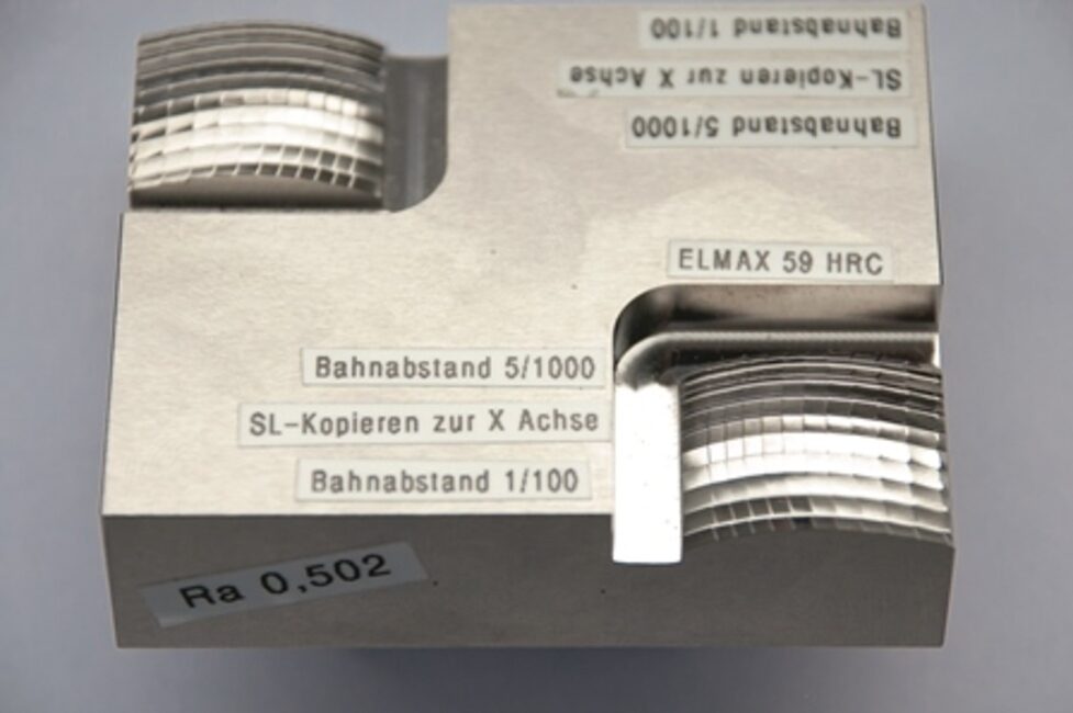 Také s dosahovanou jakostí obrobené plochy nebyli pracovníci ve Šmalkaldech zcela spokojeni. Proto v Durynsku hledali více informací. Opatřili si přehled na trhu dostupných materiálů, strojů a různých dodavatelů frézovacích nástrojů a uzavřeli bližší kontakt s firmou MMC Hitachi Tool. „Dotaz na Formconsult zněl, zda by měli pro konkrétní případ řešení. Porovnal jsem nejprve doporučení pro obrábění uváděná výrobcem Elmax – Uddeholm s mými zkušenostmi a se zkušenostmi kolegů z provozní techniky,“ vzpomíná Jörg Hecker, odpovědný v regionu za techniku použití od firmy MMC Hitachi Tool. „O něco později jsme společně s pracovníky firmy Formconsult provedli na obou strojích zkoušky. Udělali jsme mnoho zkoušek s rozmanitými nástroji, strategiemi frézování a různou polohou nástroje k obrobku, ve kterých jsme krok za krokem dospěli k dnešnímu výsledku.“