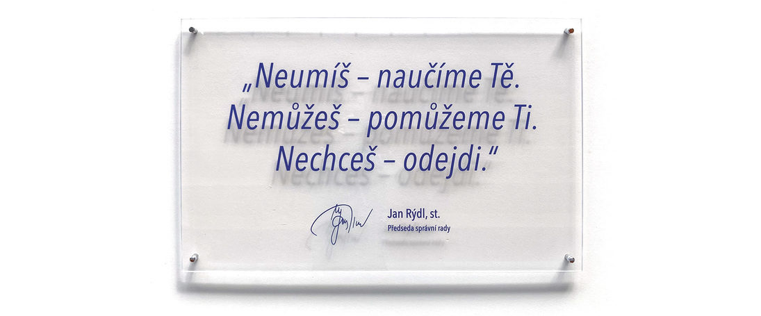 Ing. Rýdl: Hovořil jsem o dnech otevřených dveří. Mládež a rodiče seznamujeme s hodnotami firmy, které jsou totožné s hodnotami školy. Jako příklad mohu uvést jednoduché pravidlo – kdokoliv půjde po škole a potká našeho žáka, neexistuje, aby ho nepozdravil. Je to drobnost, ale stejné pravidlo platí ve firmě. Já ještě říkám, přidejte k tomu úsměv.