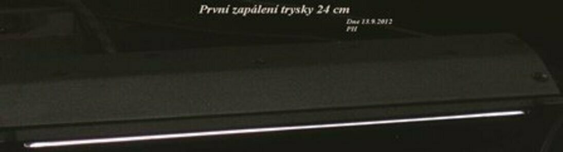 Zapálená plazmová tryska délky 24 cm, která měla být aplikována na výrobní lince.