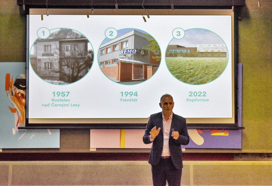 „Firma Remoska, s. r. o., je od 90. let výrobcem a prodejcem pečicí mísy remoska. Ale nejen původní pečicí mísy. Dnes už máme daleko rozsáhlejší sortiment, nicméně u samotné pečicí mísy stále vycházíme z principu původní remosky z dílny pánů Homuta, Uhera a Tyburce,“ objasňuje Jan Pešat.