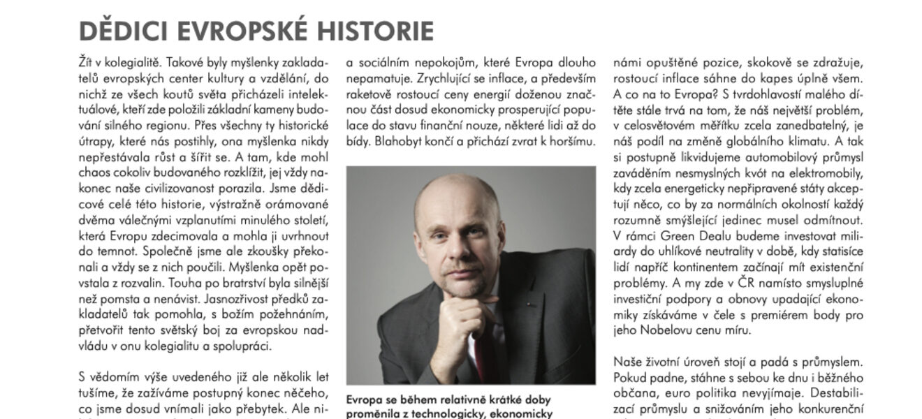 Žít v kolegialitě. Takové byly myšlenky zakladatelů evropských center kultury a vzdělání, do nichž ze všech koutů světa přicházeli intelektuálové, kteří zde položili základní kameny budování silného regionu. Přes všechny ty historické útrapy, které nás postihly, ona myšlenka nikdy nepřestávala růst a šířit se. A tam, kde mohl chaos cokoliv budovaného rozklížit, jej vždy nakonec naše civilizovanost porazila. Jsme dědicové celé této historie, výstražně orámované dvěma válečnými vzplanutími minulého století, která Evropu zdecimovala a mohla ji uvrhnout do temnot. Společně jsme ale zkoušky překonali a vždy se z nich poučili. Myšlenka opět povstala z rozvalin. Touha po bratrství byla silnější než pomsta a nenávist. Jasnozřivost předků zakladatelů tak pomohla, s božím požehnáním, přetvořit tento světský boj za evropskou nadvládu v onu kolegialitu a spolupráci.