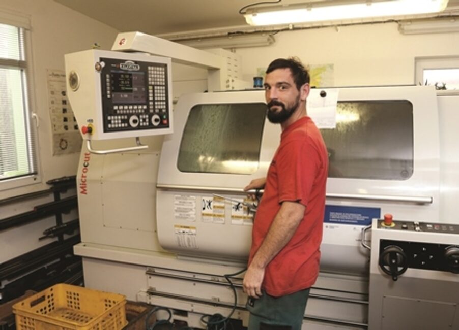 „Ze začátku jsem pracoval sám. Obsluhoval jsem tři klasické soustruhy najednou. Musel jsem se trochu ohánět, ale šlo to. Prvního zaměstnance mám od doby, kdy jsem koupil první CNC mašinu. To mě roce 2010 oslovila jedna firma z Brna a přesvědčila mě, abych si zažádal o dotaci. Myslel jsem, že jako takhle malá firma nebudu mít šanci, ale dopadlo to. Nakonec mi vyřídili dotaci i na druhý a potom na třetí stroj. Bez dotací bych už asi jedno CNC měl, ale určitě ne tři.“