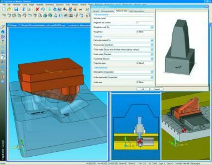 Technologická část nabízí klasickou kompozici užívaných technologií – frézování, soustružení, drátořez, elektrody, laser/plamen, prostřihování. Frézování je k dispozici od 2D (včetně 2D kontur) přes frézování ve třech osách až po pět os indexovaně nebo kontinuálně. Specialitou je komplexní simulace stroje, pro kterou silné CAD jádro s kinematikou poskytuje kvalitní podporu. Další významnou vlastností systému je stálý dohled nad materiálem, technolog tak má přehled o zbytkovém materiálu i o aktuálním stavu polotovaru. Dráhy je možno generovat zcela pod ruční kontrolou (včetně ručně prováděných pohybů nezávislých na konturách nebo tělesech) až po polo- nebo Technologická část nabízí klasickou kompozici užívaných technologií – frézování, soustružení, drátořez, elektrody, laser/plamen, prostřihování. Frézování je k dispozici od 2D (včetně 2D kontur) přes frézování ve třech osách až po pět os indexovaně nebo kontinuálně. Specialitou je komplexní simulace stroje, pro kterou silné CAD jádro s kinematikou poskytuje kvalitní podporu. Další významnou vlastností systému je stálý dohled nad materiálem, technolog tak má přehled o zbytkovém materiálu i o aktuálním stavu polotovaru. Dráhy je možno generovat zcela pod ruční kontrolou (včetně ručně prováděných pohybů nezávislých na konturách nebo tělesech) až po polo- nebo plnoautomatické obrábění těles. Systém si vždy pamatuje, jaká je situace polotovaru v procesu obrábění, takže dráhy se tvoří skutečně v místech, kde je to nezbytně nutné. Současně je prováděna komplexní kontrola kolizí spolu s kontrolou technických možností realizace vybraných operací s ohledem na možnosti použitého stroje.