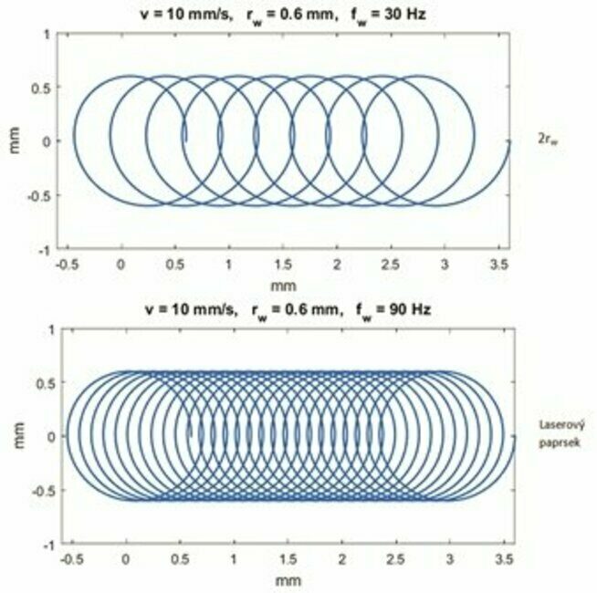 Pro porovnání svařovacích časů mezi běžnou a skenovací hlavou byl proveden experiment, při kterém se svařovaly stejné geometrie – viz obr. 2, vždy s běžnou a poté se skenovací hlavou. Byla zachována stejná svařovací rychlost, ale rychlost přesunu mezi jednotlivými částmi svaru je samozřejmě různá. Vyšší svařovací rychlosti nelze u běžné hlavy nesené robotem aplikovat z důvodu její setrvačné hmotnosti a souvisejících problémů s dynamikou systému. Kromě stejné svařovací rychlosti kvůli porovnání – 30 mm.s-1 – byla u skenerové hlavy použita ještě vyšší svařovací rychlost kvůli demonstraci možností svařování.