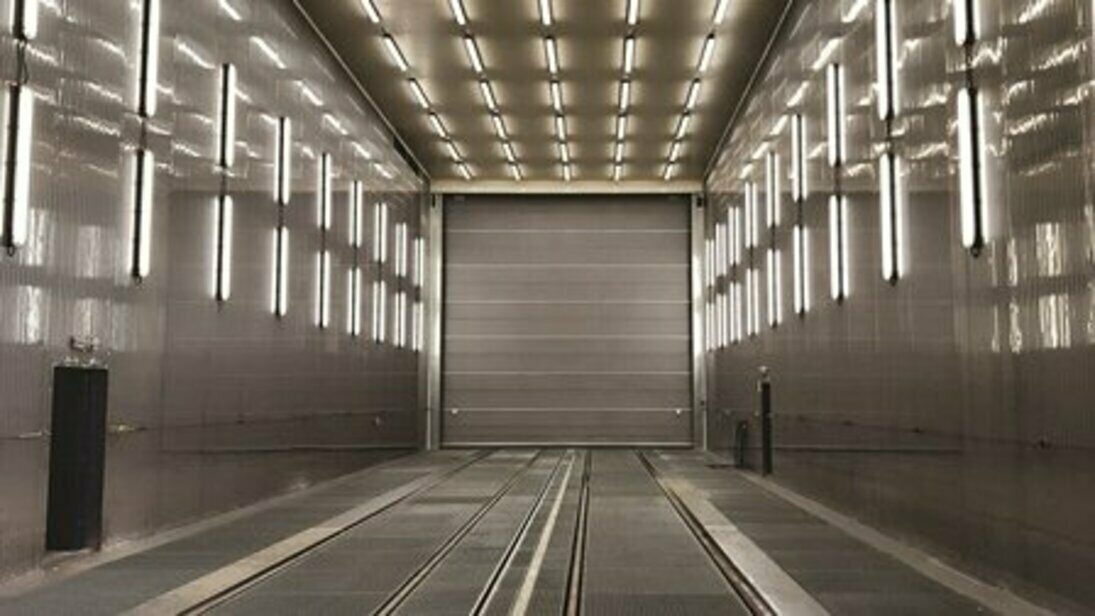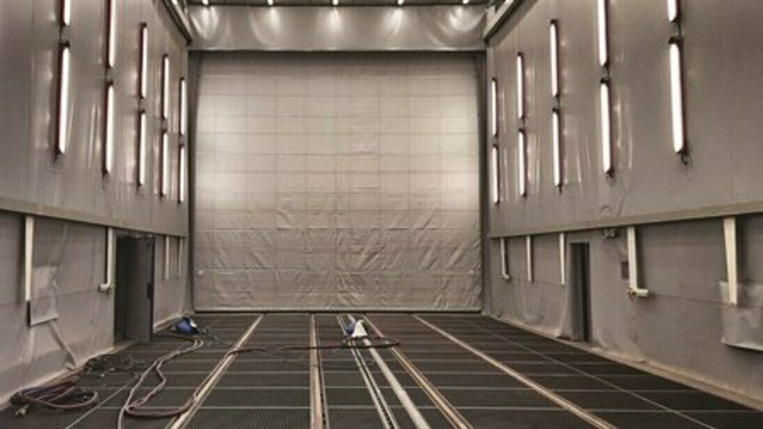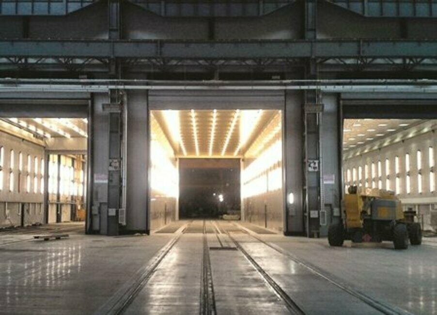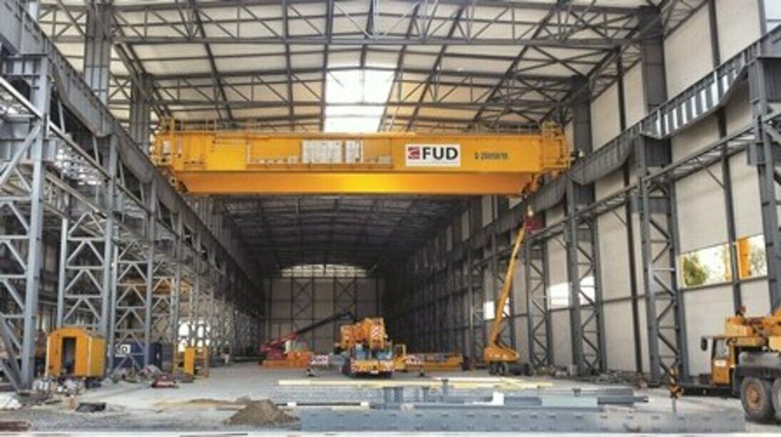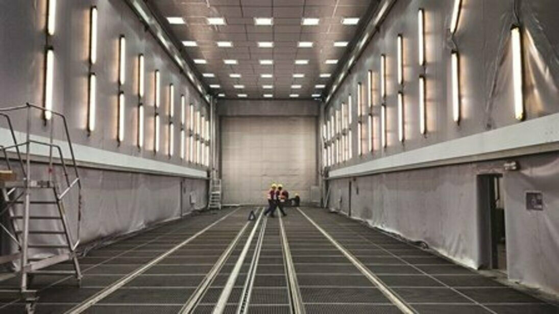 Pracoviště povrchových úprav tvoří spojovací celek mezi svařovnami s obrobnou a halou konečné montáže a expedice. Zahrnuje tyto technologie: odmašťování, tryskání nerez dílců, tryskání ocelových dílců a žárové nástřiky (obr. 1). Zavážení výrobků je zajišťováno pomocí kolejových vozů o nosnosti 25 tun (každý) se čtyřmi kolejemi s rozchodem kolejí 2x 1 435 mm. Středem komor a kabin prochází řetězový dopravník pro pohon zavážecích vozů. V tryskacích komorách a kabině pro žárový nástřik jsou umístěny manipulační plošiny pro obsluhu, které zajišťují obslužnost po celém pracovním prostoru. Ke komorám a kabinám náleží i technologické zázemí pro recyklaci abraziva, pro odsávání a zachytávání prachu, výroba a úprava stlačeného vzduchu (kompresorovna), vodní hospodářství včetně ČOV a likvidace kalů. Pro manipulaci a nakládku dílů slouží na obou stranách mostové jeřáby, které se pohybují ve dvou výškových úrovních (obr. 2). Jelikož má závod vlastní přístav na řece Odře, jsou velké díly dopravovány na lodích.
