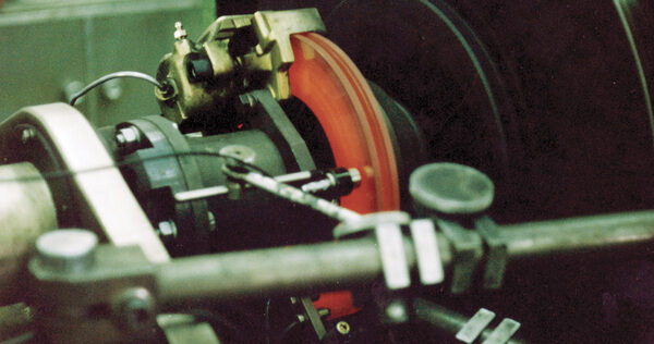 Díky teplotní stabilitě se kapacitní senzory ve velkém používají pro měření házivosti a tloušťky brzdových kotoučů přímo v zátěžových testech. (Zdroj: Micro-Epsilon)