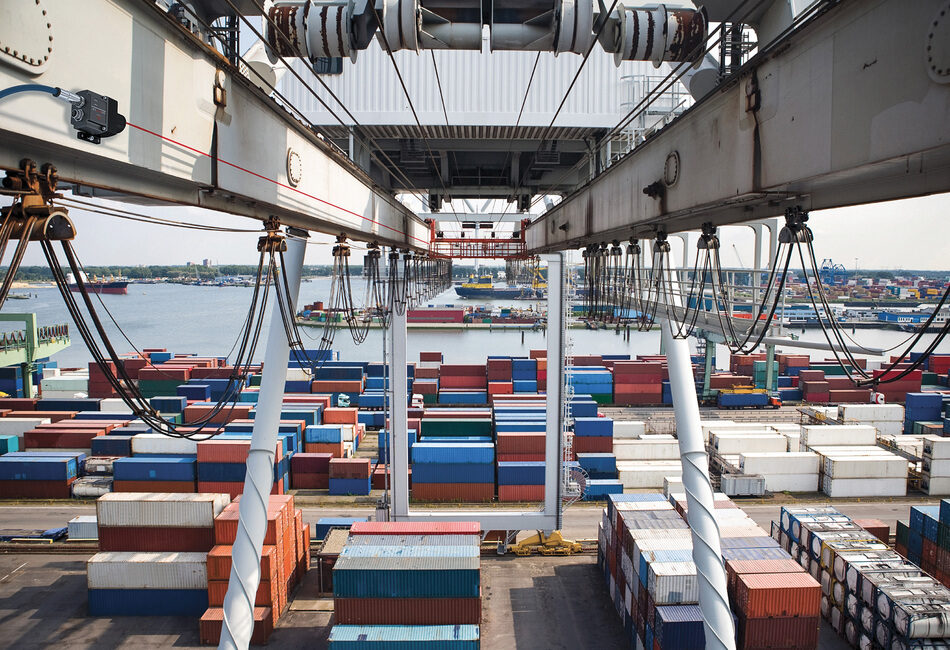 Díky velkým měřicím rozsahům jsou senzory jako optoNCDT ILR3800-100 používány například na portálových jeřábech. (Zdroj: Micro-Epsilon)