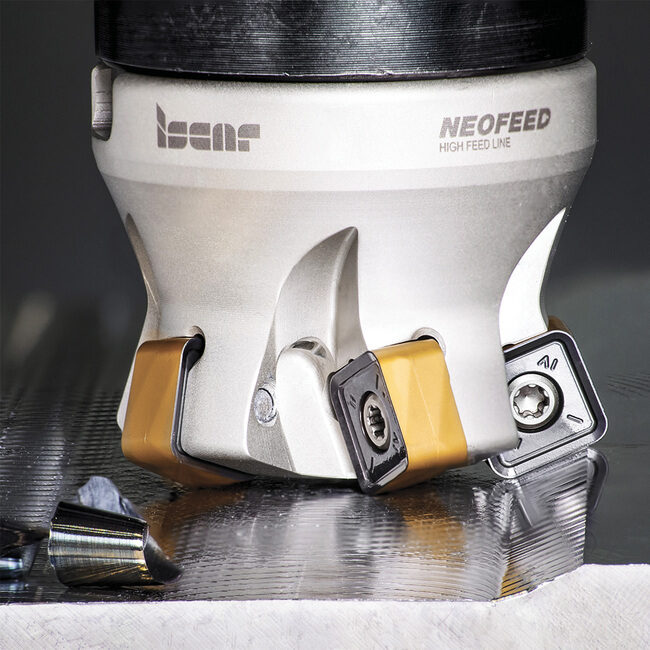 Společnost Iscar nabízí rovněž široké spektrum vysokoposuvových frézovacích nástrojů (Fast Feed), které výrazně zvyšují efektivitu a produktivitu obrábění. Vysokoposuvové frézy (FF) jsou navrženy pro dosažení vysokého úběru materiálu a zkrácení obráběcích cyklů při různých frézovacích operacích, a tudíž představují klíčový prvek technologie frézování vysokým posuvem (HFM). Jejich geometrie je optimalizována pro efektivní ztenčení třísky (chip thinning) a ideální rozložení složek řezné síly, zejména směrem do osy nástroje.