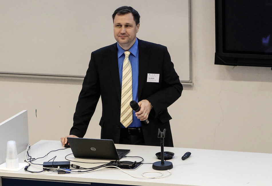 RCMT, FS, ČVUT, který se ve své prezentaci věnoval aktuálním trendům v moderní výrobě, čtvrté průmyslové revoluci, digitálním službám a datovým platformám, se slova ujal jeho kolega (z