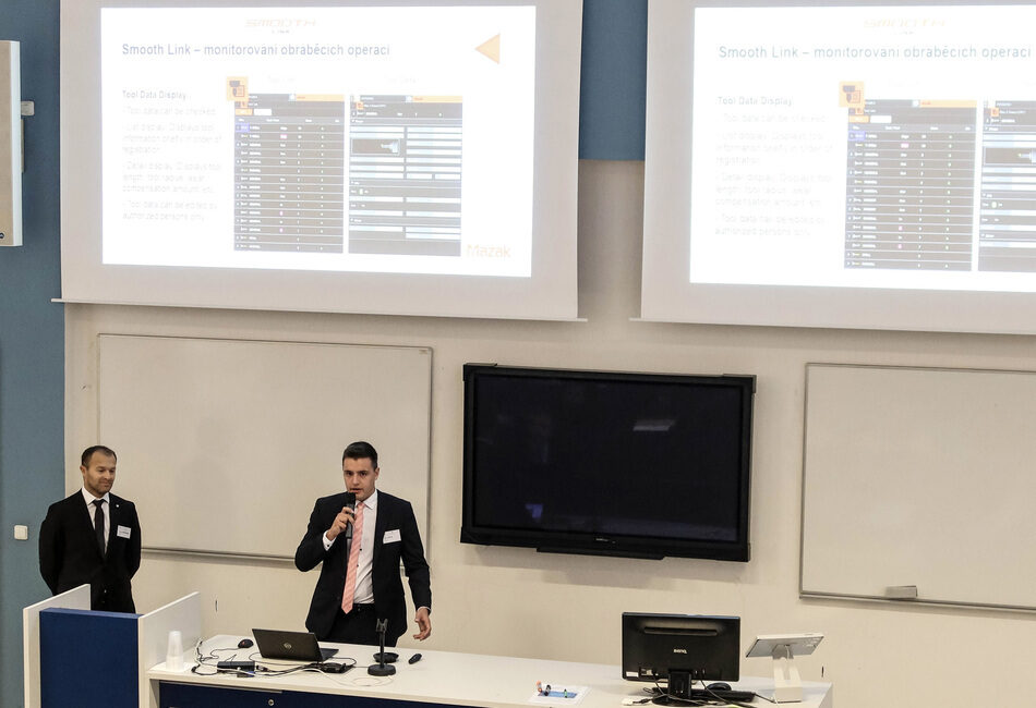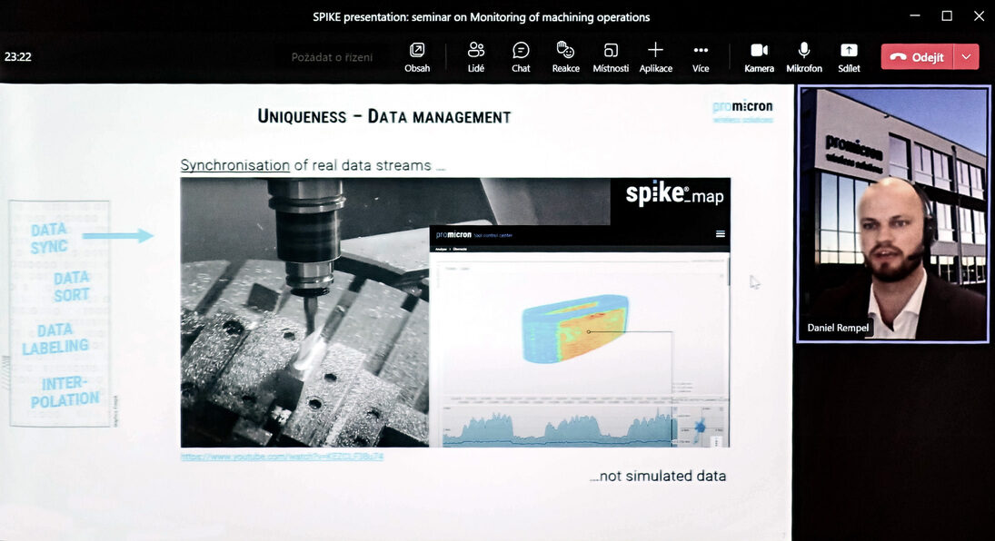 RCMT, FS, ČVUT) Jiří Švéda. Svůj příspěvek nazval „Monitoring stavu obráběcích strojů a jeho využití“ a zabýval se v něm sběrem takzvaných pomalých dat – jejich vyčítání z řídicích systémů obráběcích strojů. Tato data lze využít nejen pro reportování stavu stroje, ale i pro sledování stavu výroby ve vazbě na její řízení prostřednictvím firemní IT infrastruktury. V tomto ohledu jsou důležité otázky unifikace komunikačních rozhraní a datových modelů. Prezentace dále pojednávala o zajištění bezpečnosti a integrity dat prostřednictvím IT infrastruktury a o komunikaci systému s operátorem. Užitečnou informací byl rovněž doporučený postup při návrhu systému pro monitoring stavu obráběcích strojů.