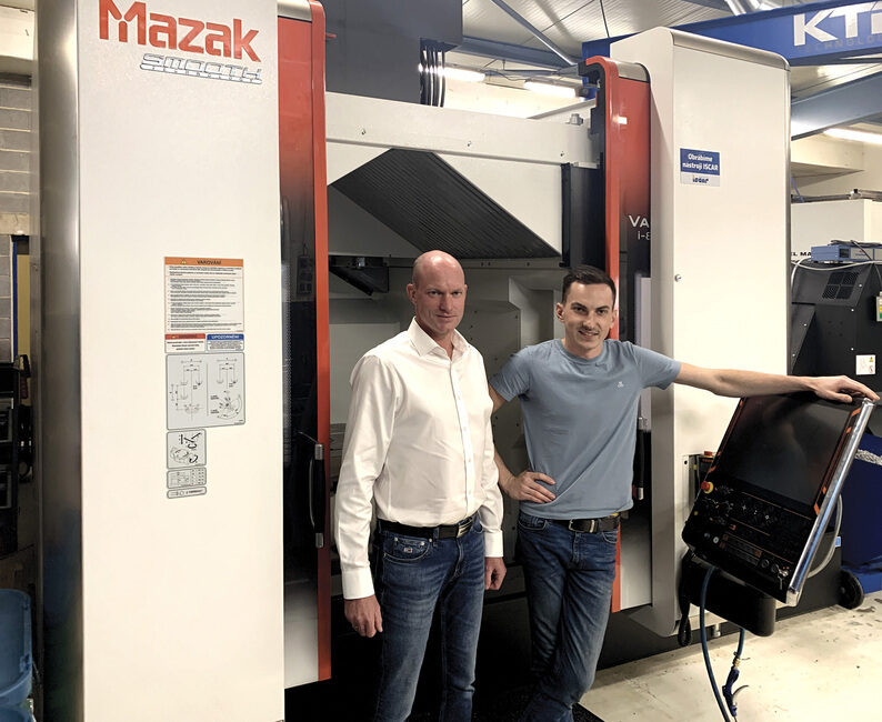 Spolupráce mezi firmami KTD Technologies a Mazak započala před dvěma lety. Letos v červenci, měsíc po podepsání objednávky, bylo z evropského skladu dodáno obráběcí centrum Mazak Variaxis i800 Neo. „Kvalita, tuhost, servis, intuitivní ovládání...“ vyzdvihuje Tomáš Duspiva (vpravo) dosavadní zkušenosti z provozu stroje a Ivan Šedivec k tomu s úsměvem dodává: „Když se točí vřeteno, stroj vydělává a zákazník dále investuje.“ (Foto: R. Dvořák)