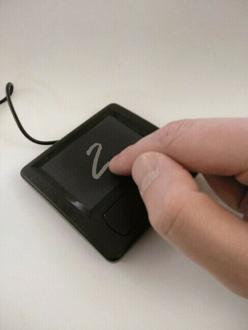 Předváděcí model AIfES pro rozeznávání rukopisů. Ručně psaná čísla na touchpadu PS/2 jsou identifikována a odeslána mikrokontrolérem. (Zdroj: Fraunhofer IMS)„