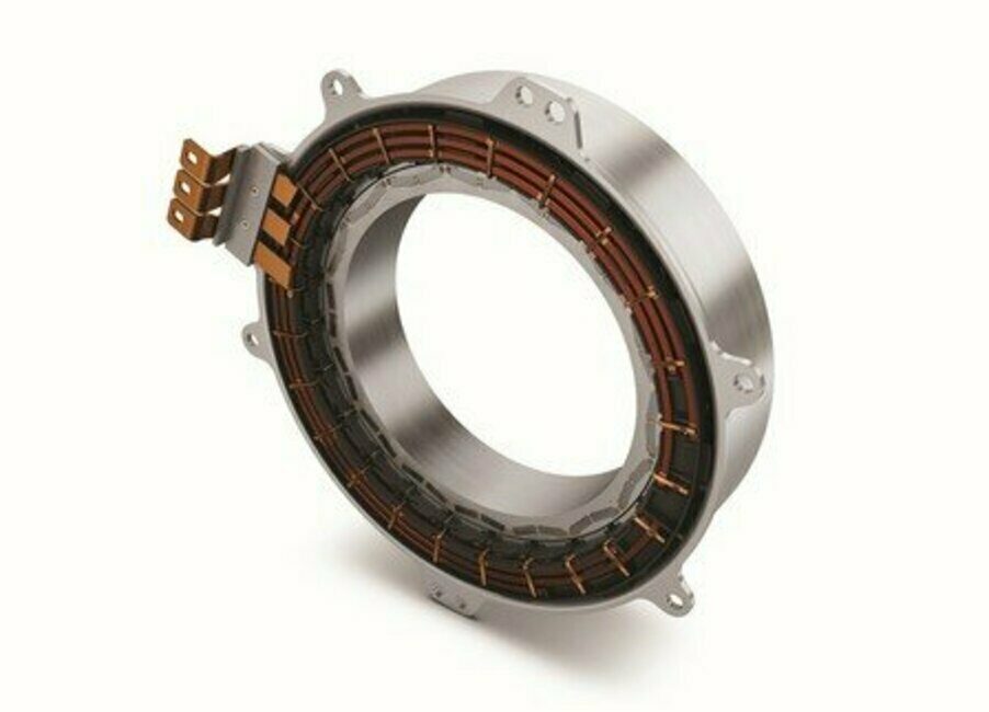 V závislosti na podmínkách v montážním prostoru může totéž platit i pro elektromotory v dedikovaných hybridních převodovkách. Tyto převodovky se většinou navrhují tak, aby se pro elektromotory získalo více montážního prostoru v axiálním směru a aby elektrické stroje běžely rychleji. Výkony se obvykle pohybují v rozsahu 80 až 140 kW. V závislosti na provozním režimu převodovky, resp. pohonného ústrojí, pracují tyto elektromotory v kombinaci se spalovacím motorem jako generátory nebo pohonné jednotky a jejich charakteristiky účinnosti se optimalizují podle profilu využívání. Vzhledem k čistě elektrickým jízdním režimům u plug-in hybridů nabývá na významu akustický projev pohonů. V mnoha případech je řešením použití distribuovaného vinutí. Společnost Schaeffler za tímto účelem definovala druhé standardní vinutí, pro nějž byly v rámci podniku vyvinuty i výrobní stroje. Jedná se přitom o technologii tyčového vlnivého vinutí, jehož vývoji se dlouhodobě věnuje Elmotec-Statomat v Karbenu. Pro konkrétní aplikaci byl vyvinut trakční motor, který při celkové axiální délce 137 mm generuje výkon 125 kW a točivý moment 310 Nm.