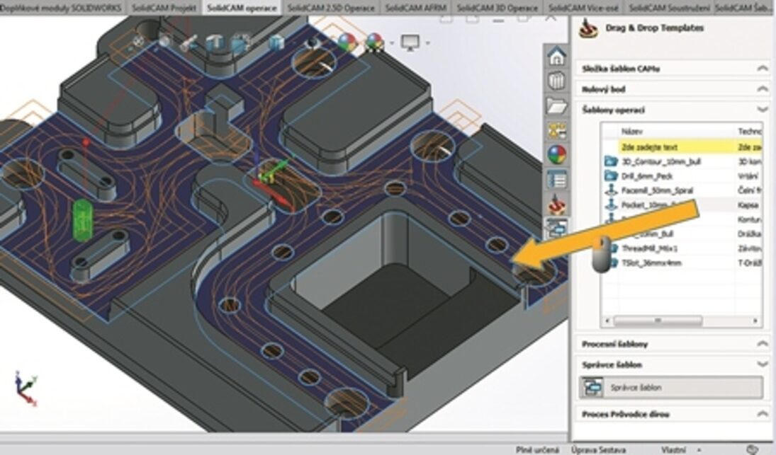Drag&drop a nové prostředí v SolidCAMu jsou skvělou pomůckou. Uložené šablony jsou nejen databází znalostí, které lze sdílet, ale obejde se bez pracné implementace a složitých postupů. Vlastně vše vznikne „samo“ tak nějak za chodu. A zvládne to každý a každý nad tím procesem bude mít naprostou kontrolu.