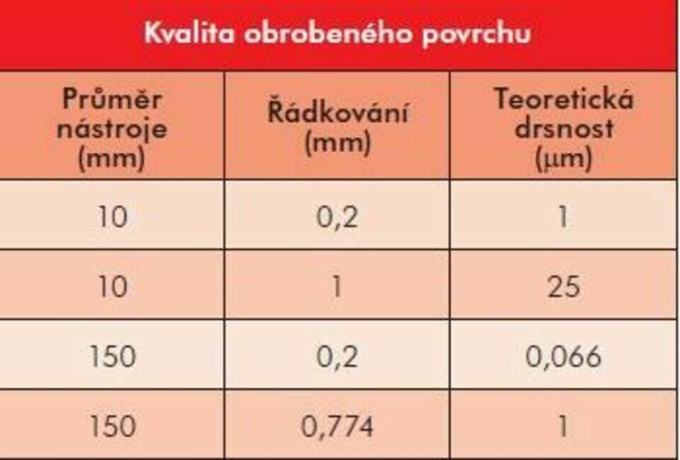 Uvedený příklad ukazuje na nutnost a vhodnost studia kinematiky obrábění. A to nejen pro obrábění tvarových ploch, ale také pro zlepšení technických a ekonomických výsledků práce nástroje. Vhodnou kombinaci tvaru ostří nástroje a kinematiky obrábění lze studovat pomocí simulace na počítači.