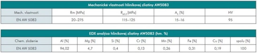 Hlavným legujúcim prvkom hliníkovej zliatiny AW5083 je horčík, ktorý vplýva na zvýšenie pevnosti. Mg má na vytvrdenie značne väčší vplyv ako Mn (0,8 % horčíka má rovnaký efekt ako 1,5 % mangánu). Označenie H111 znamená, že hliníková zliatina bola deformačne spevnená. Táto zliatina je stredne pevný materiál, patrí do skupiny nevytvrditeľných zliatin a nie je možné spevňovať ju tepelným spracovaním, ale iba mechanicky, a to tvárnením za studena. Daná zliatina má dobrú odolnosť voči korózii v morskom prostredí, odolnosť voči vibračnému zaťaženiu a má dobrú zvariteľnosť, tvárniteľnosť a lomovú húževnatosť. Má najvyššiu pevnosť z tepelne nespracovateľných zliatin, ale nie je odporúčané ju používať pri teplotách vyšších ako 65° C, pretože sa môže objaviť korózne praskanie pod napätím. Používajú sa hlavne pri stavbe lodí a v architektúre. V rovnovážnom fázovom diagrame Al-Mg sú zobrazené tri intermetalické fázy, a to β fáza s približnou stechiometriou Al3Mg2, ktorá vyvoláva sklon ku korózii a vylučuje sa na hraniciach zŕn, fáza γ má stechiometriu Al12Mg17 pri 58,6 at. % Mg a fáza R, tiež označovaná aj ako ε, má stechiometriu Al30Mg23 pri 42 at. % Mg. Mikroštruktúra základného materiálu pozostáva zo zŕn so smerovou orientáciou, typickou pre valcovanú štruktúru.