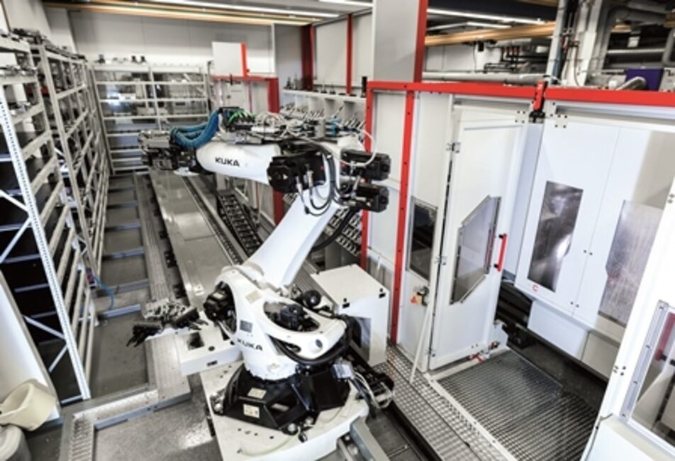 K rozsáhlému strojovému parku patří osm pětiosých vysokovýkonných CNC obráběcích center firmy Hermle: čtyři obráběcí centra konstrukční řady C 30 U a další čtyři typu C 42 U. Z nich se jedno používá jako samostatná jednotka. Ostatní tři jsou pomocí robotického systému RS 2-L a dvojitého zásobníku pro sto osmdesát palet s obrobky a dvěma sty přídavných nástrojů propojena do plně integrované flexibilní výrobní buňky. Včetně obráběcích center již vybavených přídavnými zásobníky nástrojů je tak v celém systému k dispozici osm set nástrojů. V zásobníku pro palety na obrobky se nacházejí palety, na kterých je připevněn upínací prostředek pro jeden nebo i více obrobků. Podle obráběcích časů jednotlivých obrobků – mezi patnácti minutami až osmi hodinami – zpracovává flexibilní výrobní buňka v jedné nebo více směnách soběstačně své pracovní zásoby. Jelikož se osazování polotovary a vyjímání hotových dílů provádí paralelně s hlavním časem, je možný nepřetržitý provoz.